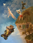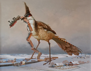 2016Olieverfschilderijen uit de reeks *Bomen en Vogels*. In houten kaders. Te koop.