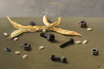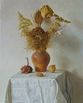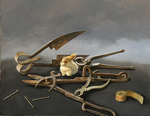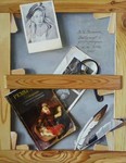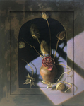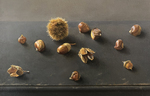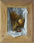 2019Stilleven met geschilderde kader. Illusie. Teasel morem pellis hispidus*
