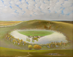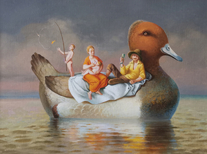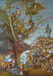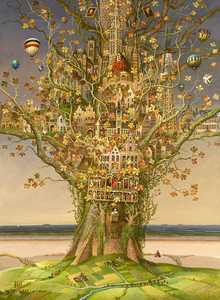 2016Olieverfschilderijen uit de reeks *Bomen en Vogels*. In houten kaders. Te koop.