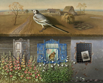2016Olieverfschilderijen uit de reeks *Bomen en Vogels* In houten kaders. Te koop.